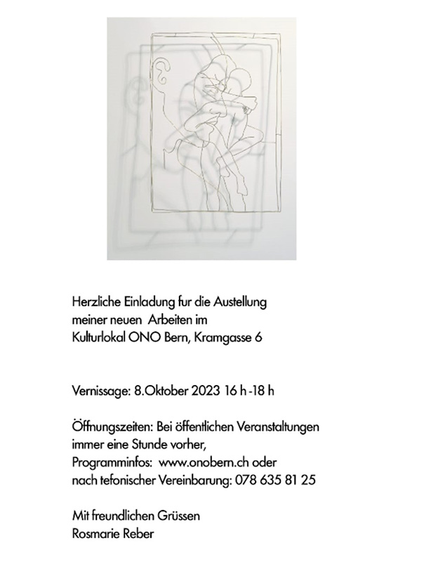 Herzliche Einladung für die Austellung meiner neuen Arbeiten im Kulturlokal ONO Bern, Kramgasse 6.